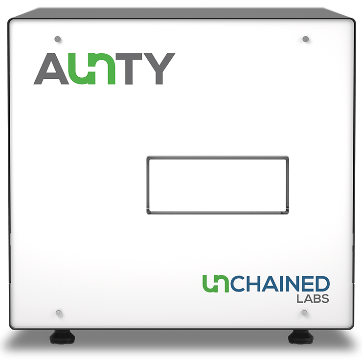 Aunty is the fastest and highest throughput protein stability characterization tool on the planet. Period. With unrivaled fluorescence, Static Light Scattering (SLS) and Dynamic Light Scattering (DLS) skills, Aunty blasts through thermal melting and aggregation experiments — reading an entire 96-well plate of samples every minute of a thermal ramp. Sift through piles of candidates, conditions, or formulations, with as many replicates as you want. Aunty cranks out plates of results with unprecedented data resolution, so you can find your winners at breakneck speed.
