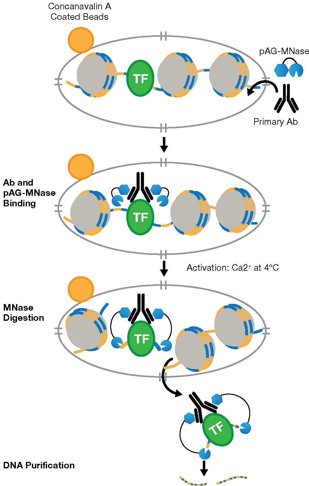 Cleavage Under Targets & Release Using Nuclease (CUT&RUN) is a new technology that utilizes target-specific primary antibodies and pAG-MNase to isolate protein-DNA complexes on native chromatin for analysis by qPCR or next-gen sequencing (NGS). We have compiled a collection of videos, application notes, eBooks, blogs, and more to demonstrate how CUT&RUN is compatible with histones, transcription factors and cofactors, has a low sample requirement, allows you to progress from cell to DNA in 1-2 days, and requires less NGS due to very low background signal.